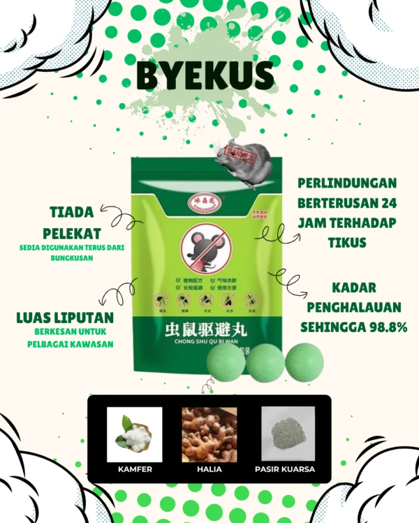 Kamfer – Bau kuat dan menyengat, sangat tidak disukai oleh tikus.– Mengganggu sistem pernafasan & buat tikus rasa tak selesa.